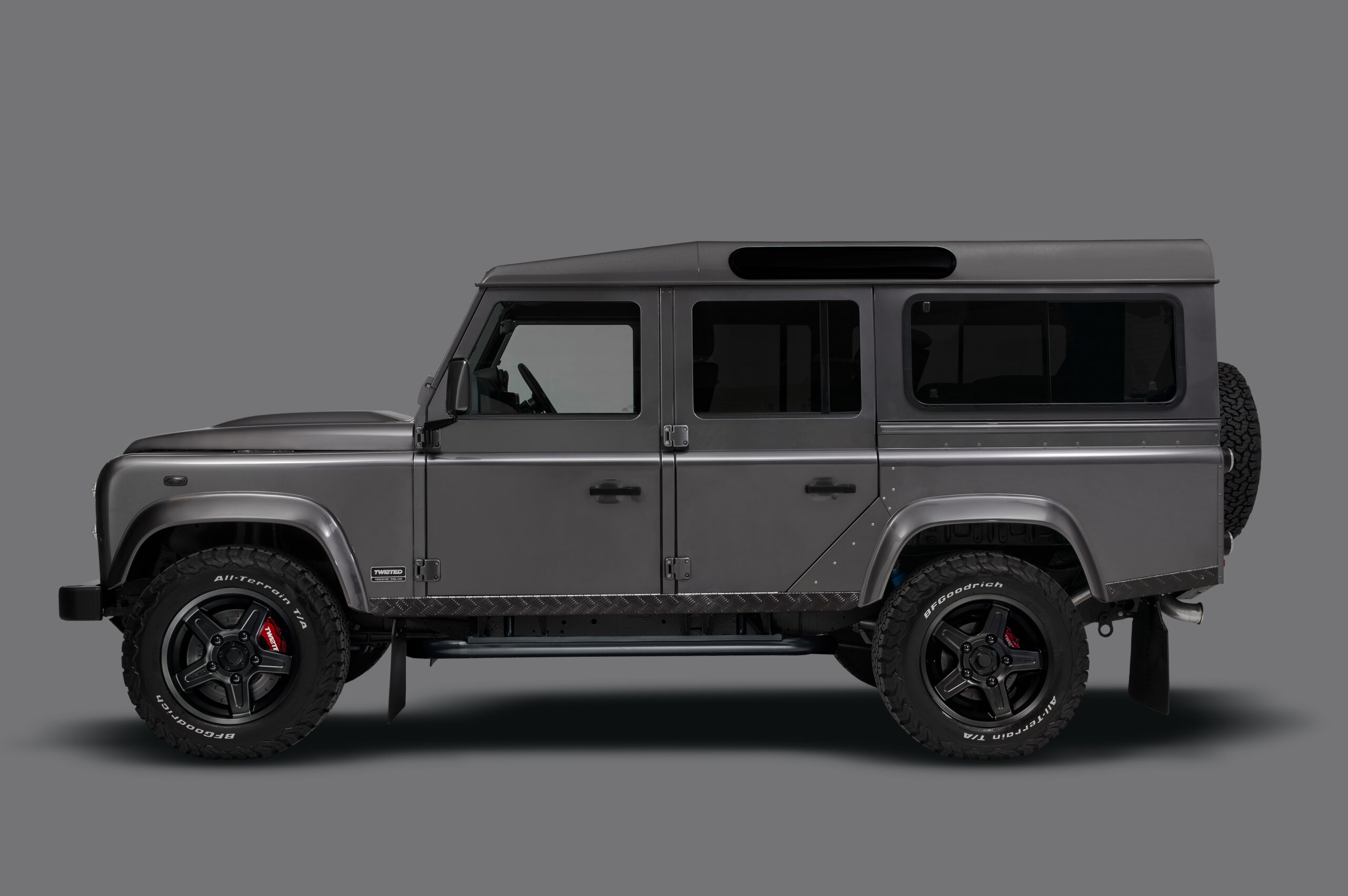 Utilising a brand new GM LT1 V8 engine and 8 speed automatic transmission, the power is put through an all new driveline upgraded with heavy duty driveshafts, half shafts and differentials. Our Twisted developed intercooler, stainless steel exhaust, custom engine and gearbox mapping take the car from its standard power up to 480hp and an effortless cruiser on country lanes and freeways alike. Stopping power has not been forgotten, and our 6 pot front and 4 pot rear brakes have been installed giving a massive upgrade over the standard Land Rover offerings alongside our unrivalled progressive suspension, dialed in for the driveline upgrades and engine tuning to ensure you are comfortable over the bumps, but stable at speed.