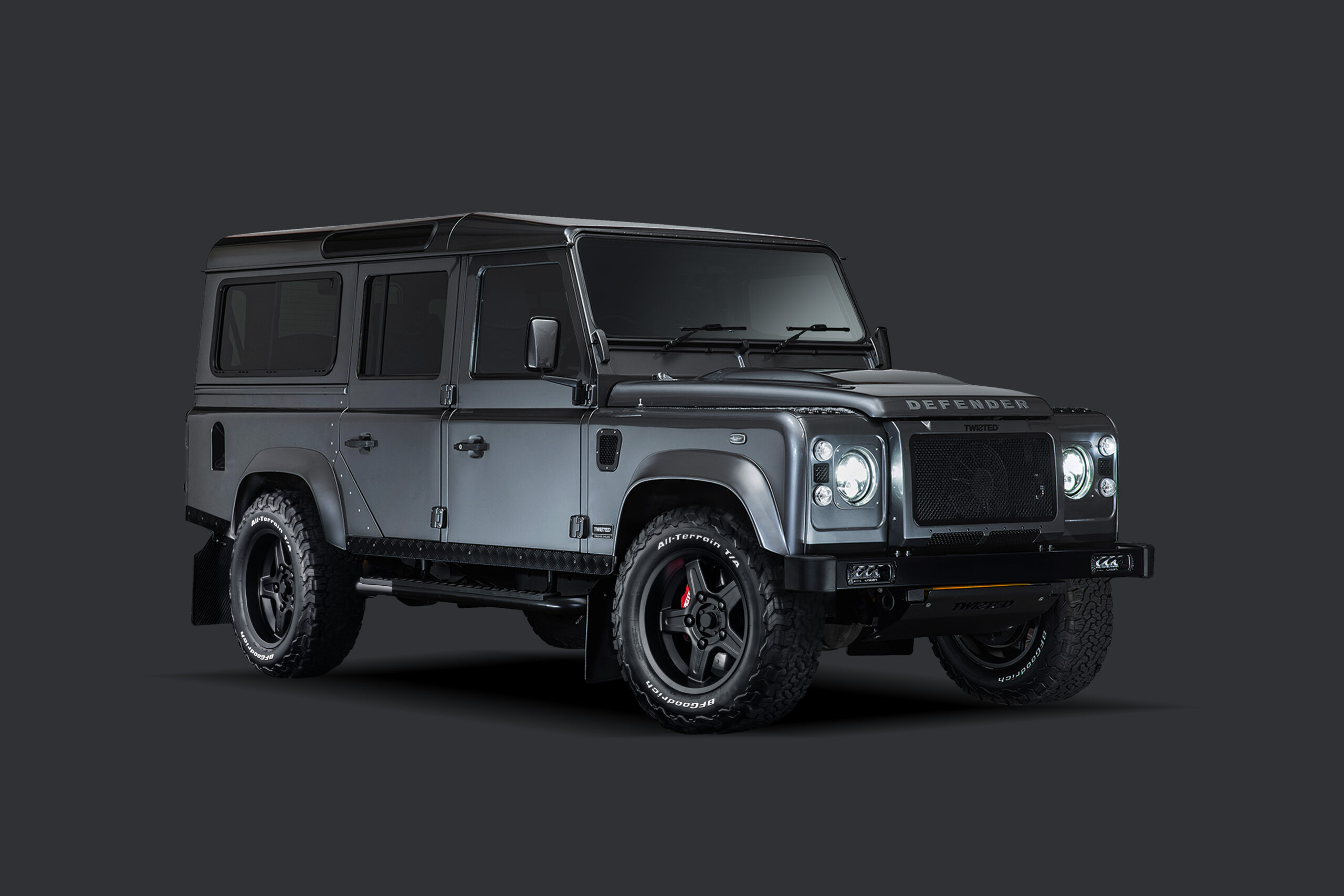 Externally this T110 is finished in Corris Grey metallic paint and our 18″ satin black Twisted Classic alloy wheels, Subtle but extensive upgrades including LED lighting all round, a specially designed bumper with subtle day time running lights that double up as high output driving lights as well as billet aluminium windscreen blocks, door handles and fuel cap. Our Twisted Stage one front end, inspired by the 1970’s Land Rover V8 completes the look, whilst a host of unseen works can’t be seen, you know about them as soon as you spend any time with this T110.
