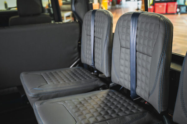 Leather Trimmed Tip Up Seat Conversion To Load Space (6 Seats) In Pewter With Caledonian Stitch With Square Quilt Detailing