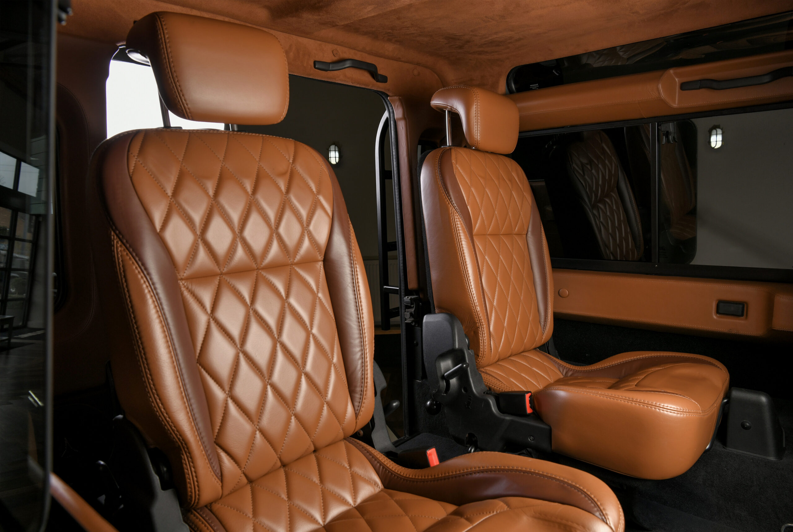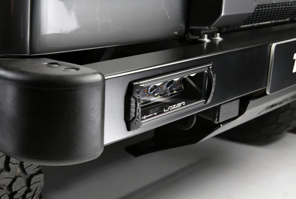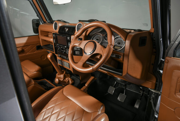 The exterior has been enhanced with our usual attention and benefits from LED lighting all round, our stage one front end conversion and tubular step bumper and wheel carrier. Its front roll hoop and roof rack offer enhanced safety along with luggage storage to keep the cabin free for passengers. Subtle additions like our wing levelling and panel alignment will never be noticed to the untrained eye, but you will know they’ve been done and all add in making this just look so right.