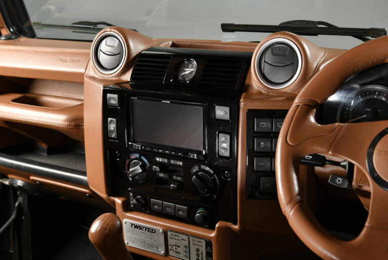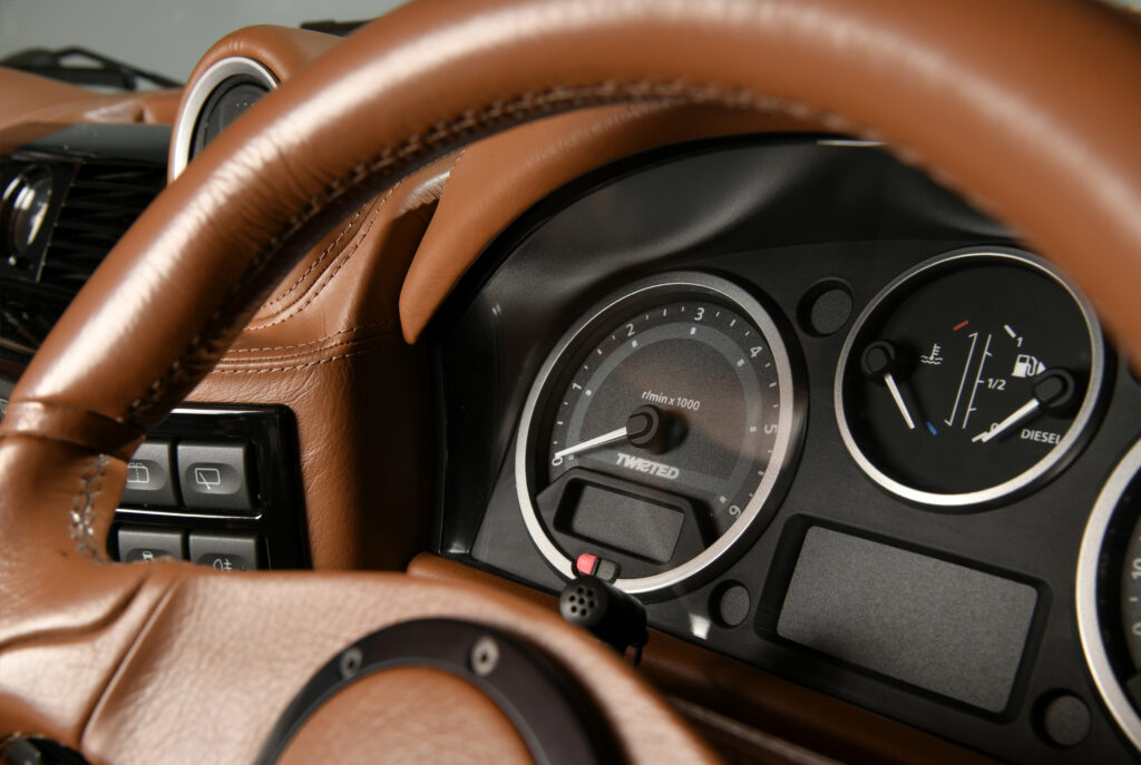 Owning a Twisted vehicle is all about the journey becoming as important as the destination. These are not designed to be mobile offices or sanitised Euro-boxes. Every build is tailored to be an analogue, engaging driving experience and this T90 is no exception. With additional power and torque delivery from the diesel engine all put through it’s 6 speed gearbox it is a drivers car through and through. This paired with our own progressive suspension and 18” Classic wheel & tyre package mean that on and off road manners are incredibly refined and stopping power is also enhanced through our big brake conversion.