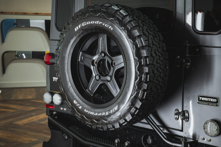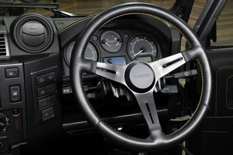 Naturally one of the biggest additions to this T90 is our TV8 conversion, a GM LT1 6.2 litre V8 engine paired with a silky smooth 8 speed automatic transmission. It provides around 480 horsepower and seemingly endless torque. It is incredibly refined around the town with nothing more than a quiet burble of the V8, but let loose on the open road, the noise and power is something to be relished. It will certainly have you smiling every second you are behind the wheel. To help with putting the power down, the complete driveline has been overhauled, upgraded and strengthened with the chassis braced. This paired with our own progressive suspension and 18” Classic wheel & tyre package mean that on and off road manners are incredibley refined.