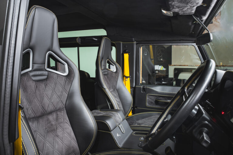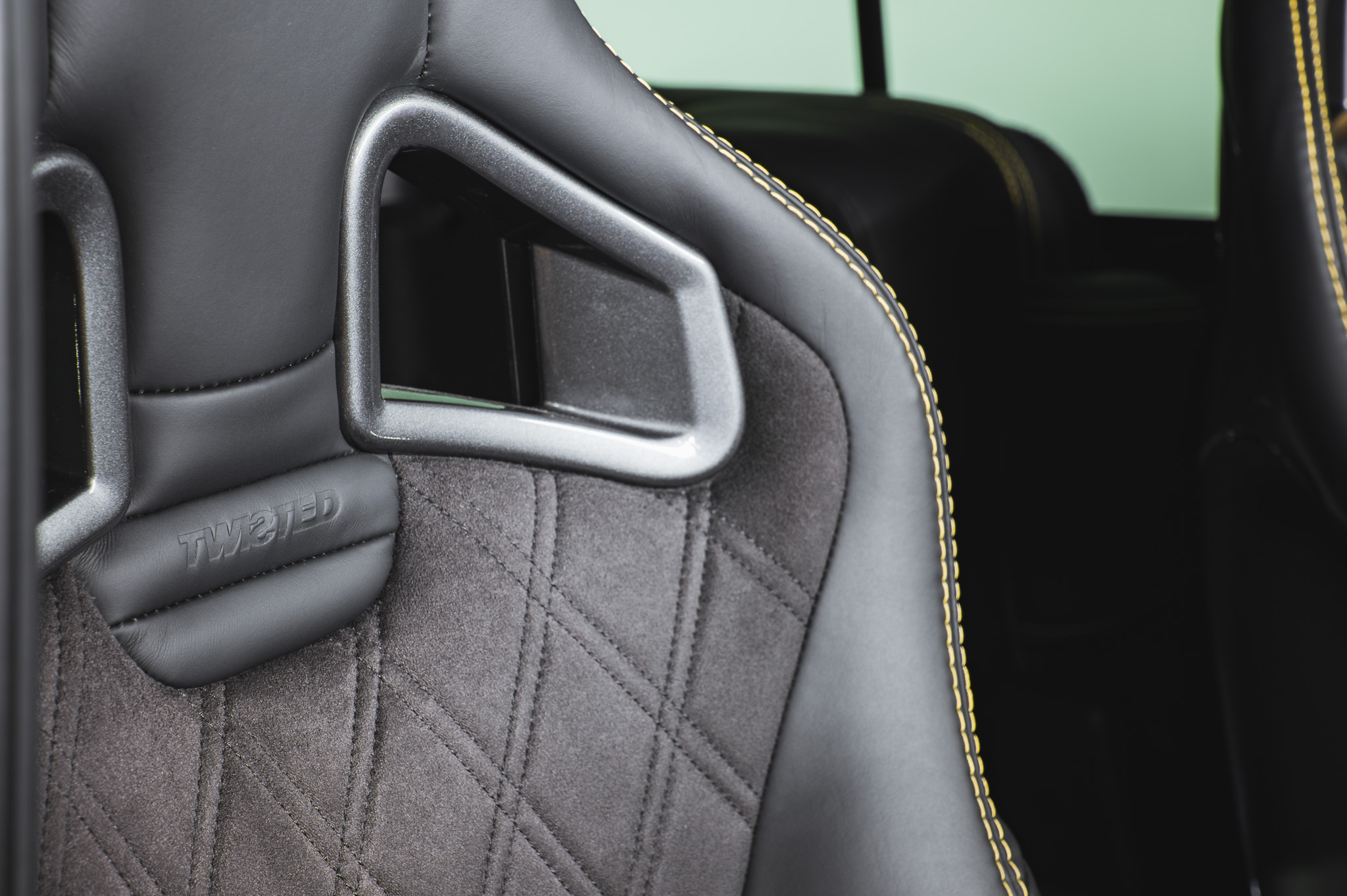 The interior has been completely reworked including full soundproofing and sealing. The original front seats have been replaced with our heated Twisted Recaros, all custom trimmed in leather and alcantara. Tying the outside to the inside are the Volcano yellow seatbelts and contrast stitch detailing to match the brakes. Ensuring the perfect soundtrack for your adventures is the double DIN conversion and upgraded audio system, featuring Apple CarPlay, satellite navigation and DAB radio along with a useful reversing camera.