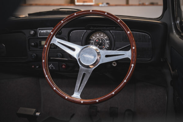 This particular TBug wears Welsh Grey with quiet confidence. This project began with a donor vehicle like nothing else; a 400 mile ‘Final Edition’ from 1980, a blank canvas from which we sculpted this incredible TBug. Stripped back to bare metal and rebuilt from the ground up, every panel tells the story of meticulous restoration. The signature Baja bodywork conversion works in perfect harmony with uprated long-travel suspension, Baja Gloss Black wheels, and chunky BF Goodrich all-terrain tyres. The result? Effortlessly cool retro attitude.