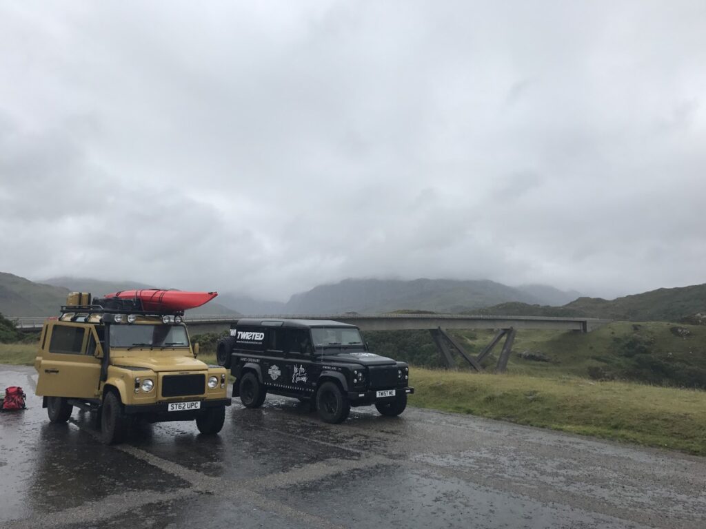 North Yorkshire to Glasgow was the first part of the journey. Sean in Colonel Mustard and team Twisted in a support vehicle – more specifically, a 110 Utility from the new Classic Range boasting uprated engine performance, Twisted progressive suspension and a stage one front end to name a few. The black 110 had just returned from a similar role on the Gumball 3000 rally. So from Riga to Mykonos to North Yorkshire to The Highlands the Classic’s road driving ability really had been put to the test.